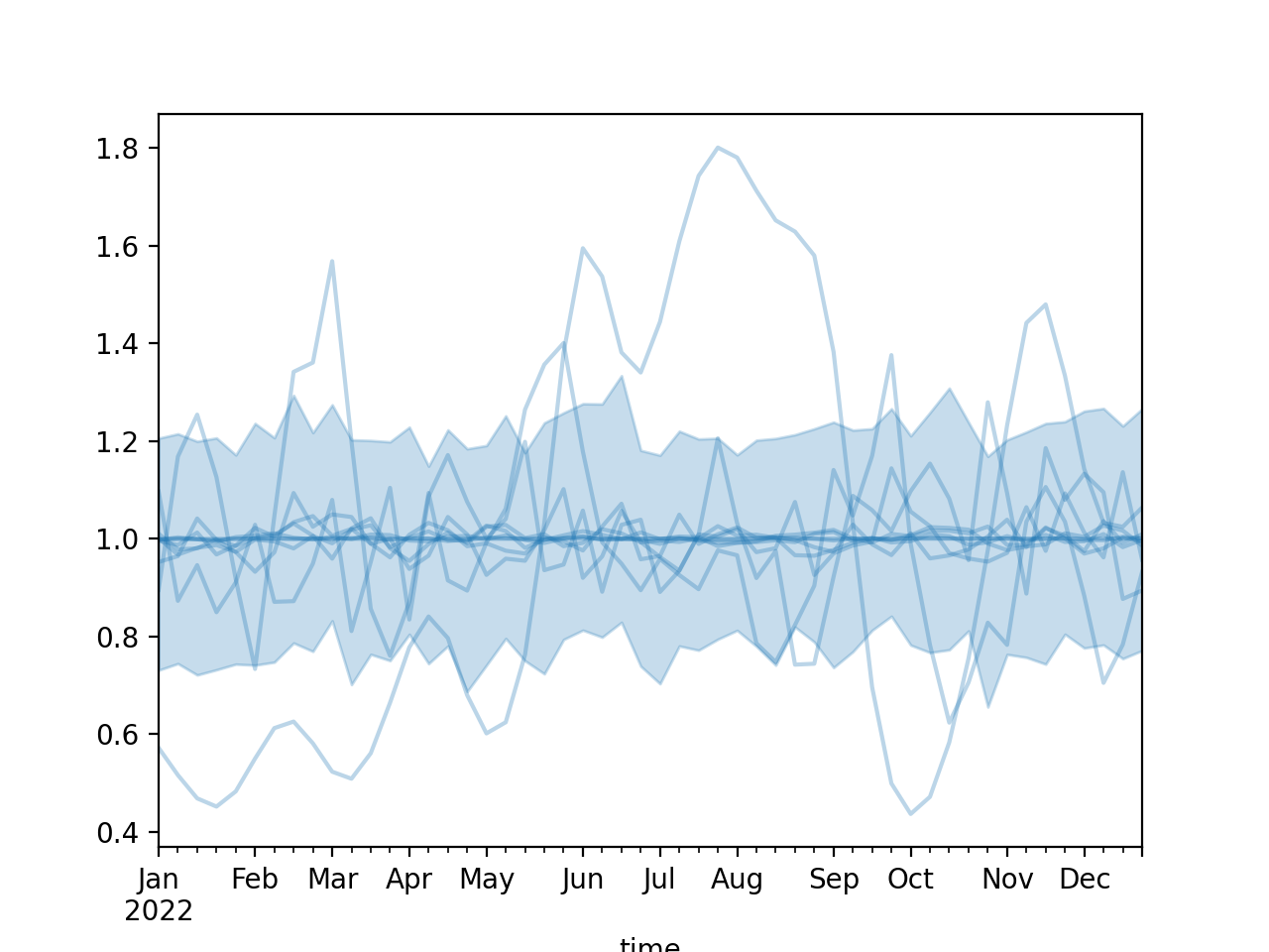 import numpy as np import pandas as pd import matplotlib.pyplot as plt from pymc_marketing.mmm import SoftPlusHSGP seed = sum(map(ord, "Out of the box GP")) rng = np.random.default_rng(seed) n = 52 X = np.arange(n) hsgp = SoftPlusHSGP.parameterize_from_data( X=X, dims="time", ) dates = pd.date_range("2022-01-01", periods=n, freq="W-MON") coords = { "time": dates, } prior = hsgp.sample_prior(coords=coords, random_seed=rng) curve = prior["f"] hsgp.plot_curve(curve, random_seed=rng) plt.show()